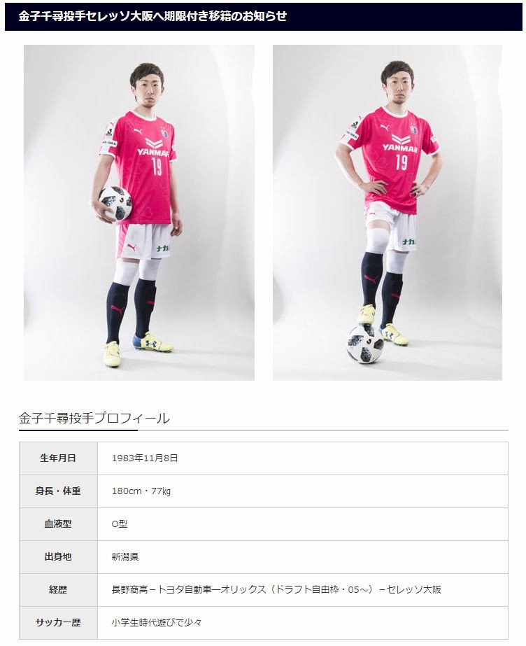 本日4月1日、オリックス・バファローズの金子千尋投手がセレッソ大阪(Jリーグ)へ期限付き移籍することになりましたので、お知らせいたします。