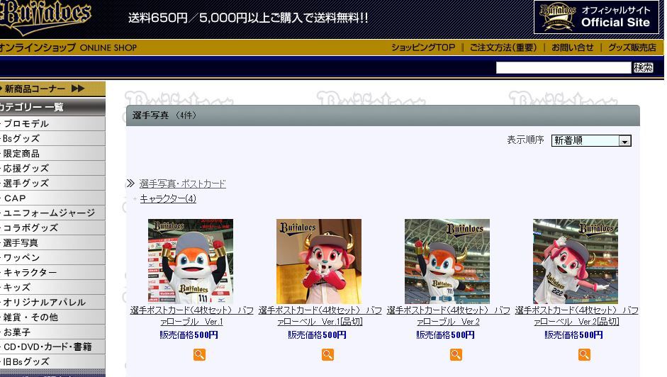 選手ポストカード(4枚セット) バファローブル Ver.1