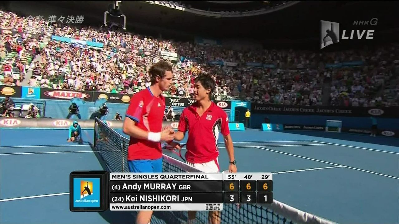 180:名無しさん@恐縮です:2012/01/25(水) 15:35:40.70ID:JQMZCCmX0錦織は混合出た分スタミナ切れが早まったかな