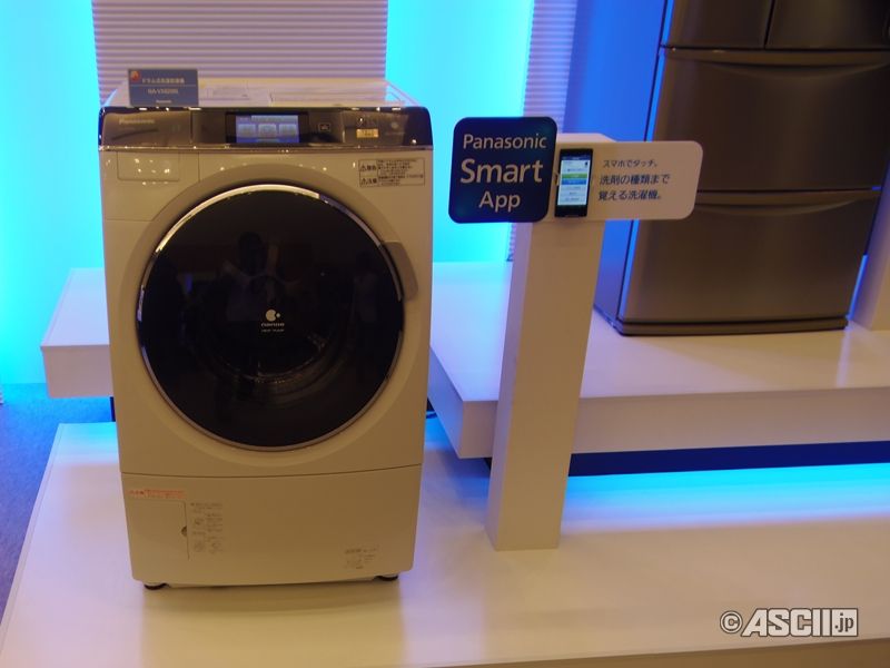 NFCで洗濯機にタッチすることで、クラウドサーバー経由で洗剤や柔軟剤の量や衣類や汚れに合った選択コースを選んでくれる。