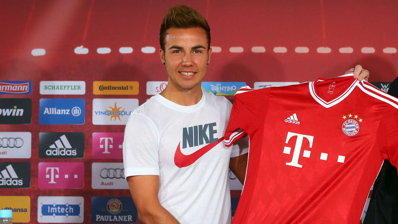 入団会見でゲッツェは、クラブのスポンサーである独スポーツ用品大手アディダスのライバル企業、 ナイキのTシャツを着用して、カメラに向かってポーズを取っていた。