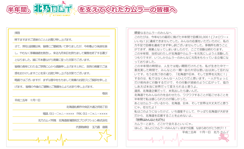 半年間、北乃カムイを支えてくれたカムラーの皆様へ