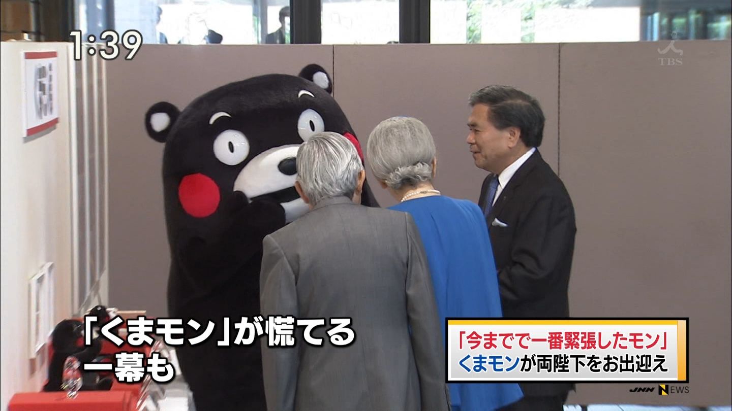 スポンサード リンクくまモンが両陛下を出迎え 熊本県庁で体操も披露