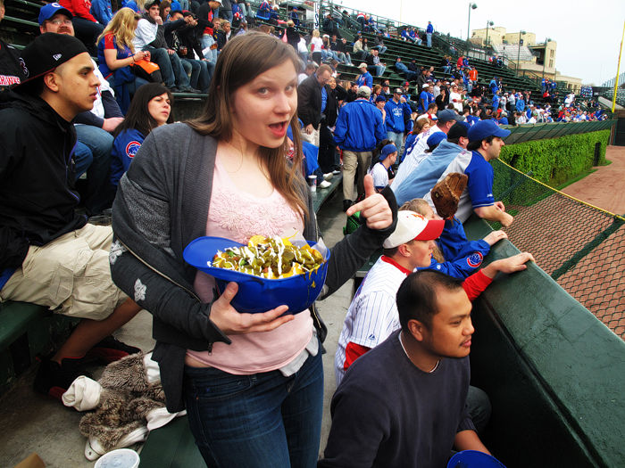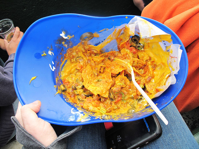 中継とかでたまに映るナチョスとガーリックフライが異常に美味そうに見える