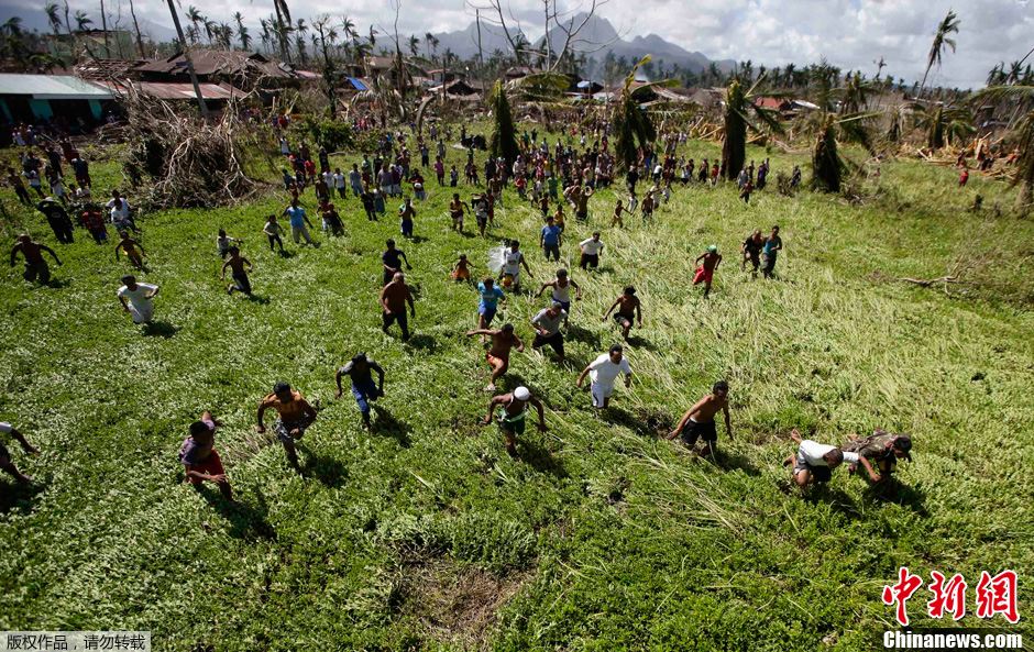 日本人だったらヘリの着陸点を起点に列を作ってるところだな