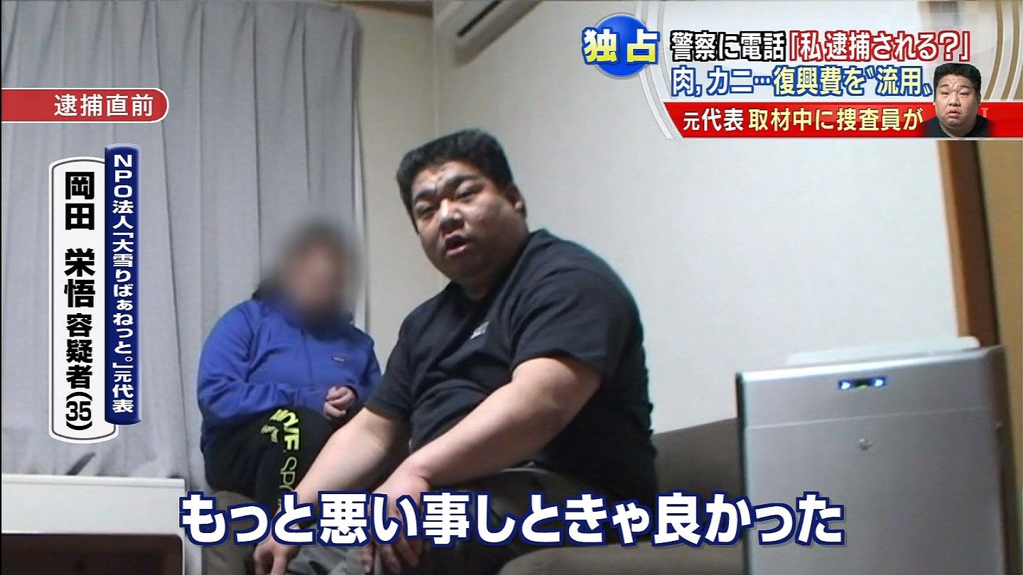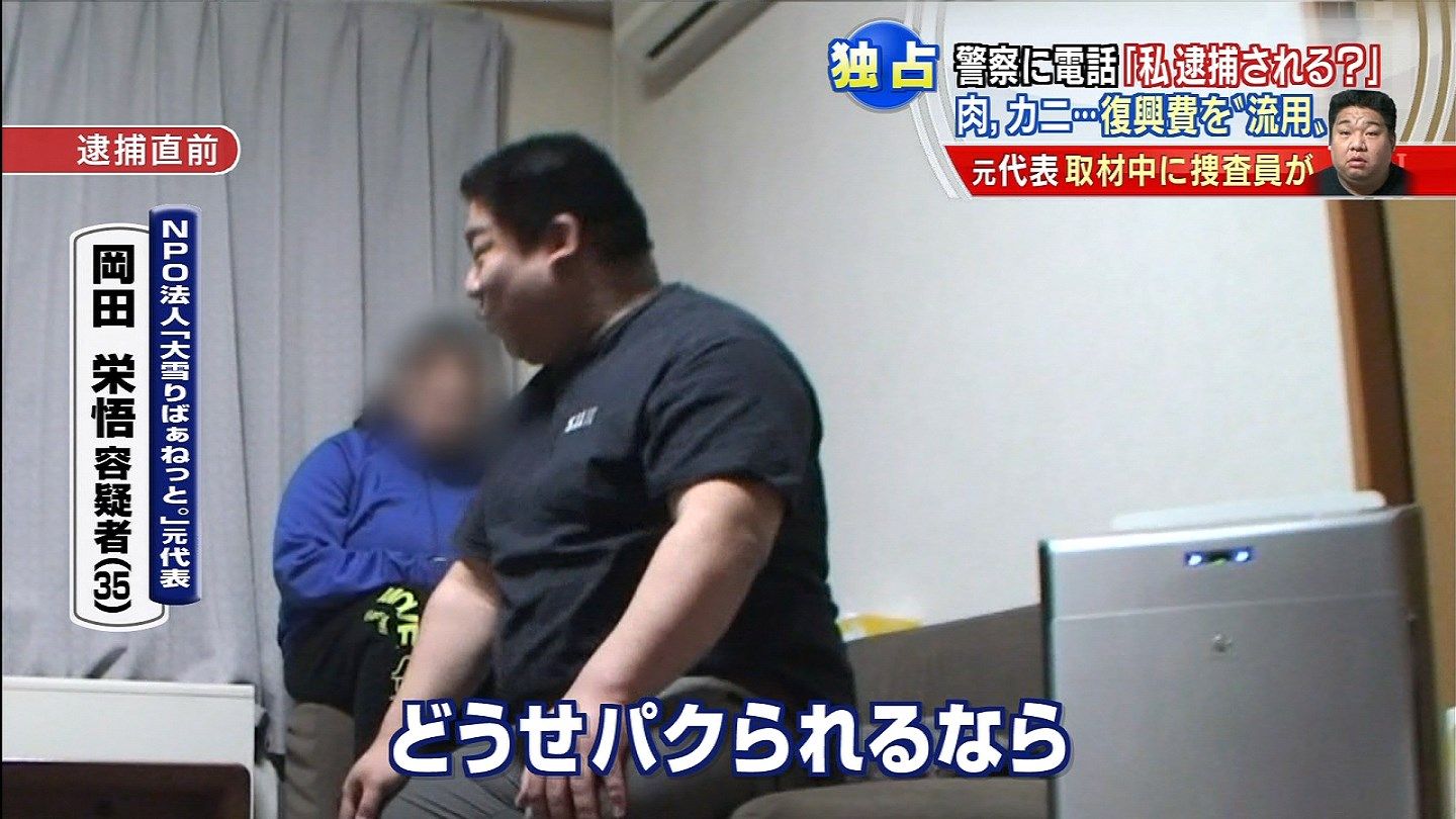 NPO法人「大雪りばぁねっと。」元代表・岡田栄悟容疑者:「新聞に『きょう逮捕へ』とあったんですが、
