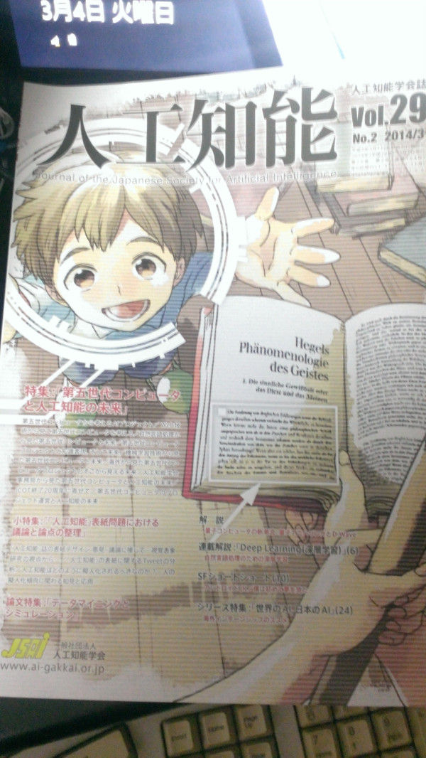 — oda_tadashi (@tadashi1990) 2014, 3月 4これはうめえ。一つの絵の中に様々なメッセージをこめつつもそれらが調和している。これをただ批判すると読解力のないことをあぶりだすことになるな。 / “メイドさん表紙で物議を醸し出してしまった人工知能学会誌ですが、その次の号ではメイド…” http://t.co/jW7Atnc6Bj