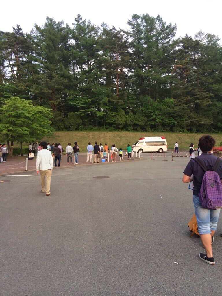 現場騒然としています。 パトカーが10台ほどきて泣き崩れている女の子もいます 中にいるファンのかたはまだそのまま中にいます