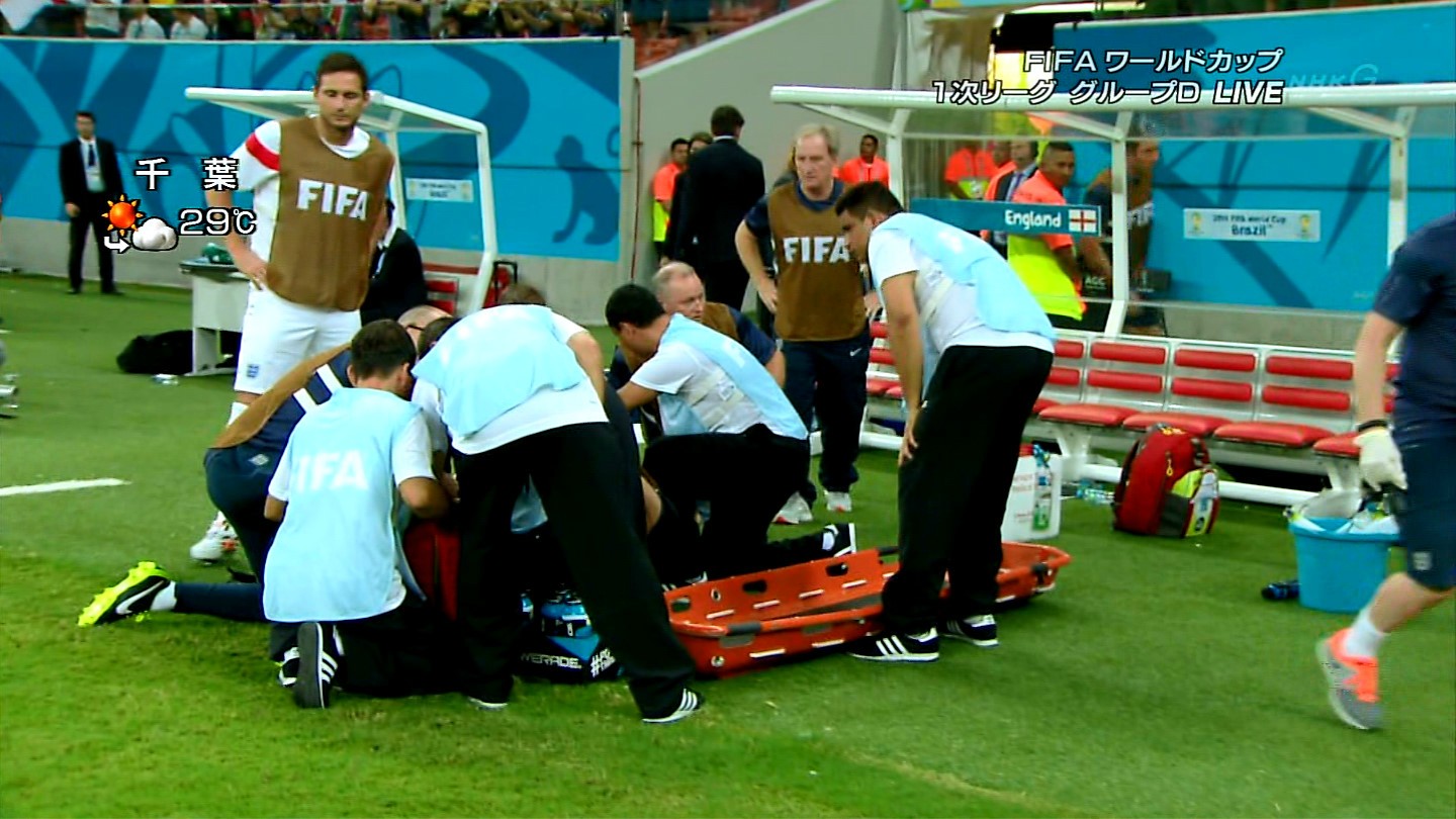 イングランド代表チームの公式ツイッターでは、「理学療法士のギャリー・レヴィンがゴールを喜んだときに負傷しました。