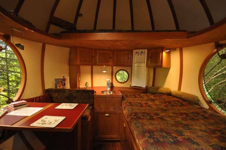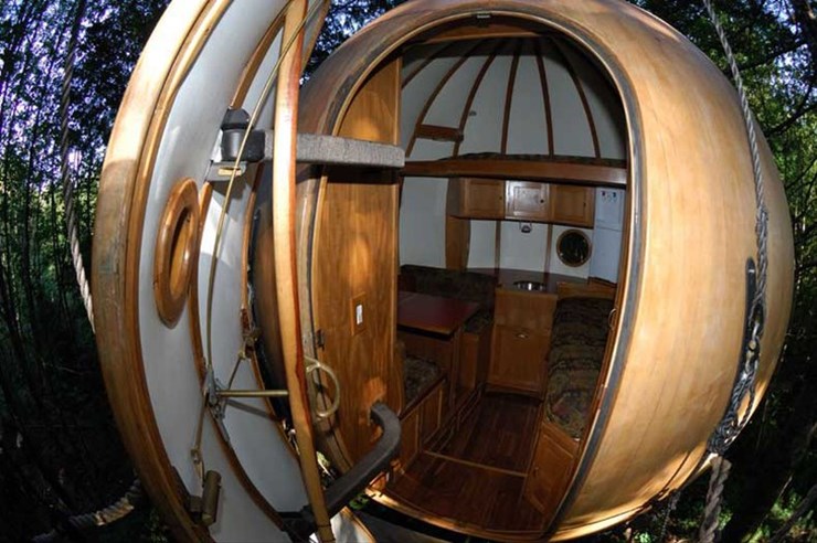球体には野鳥の絵が施されているものもあり、これが自然との調和を引き立てている。 また、大きな丸い窓から外を眺めると野生の動物たちの生活も垣間見ることが出来る。