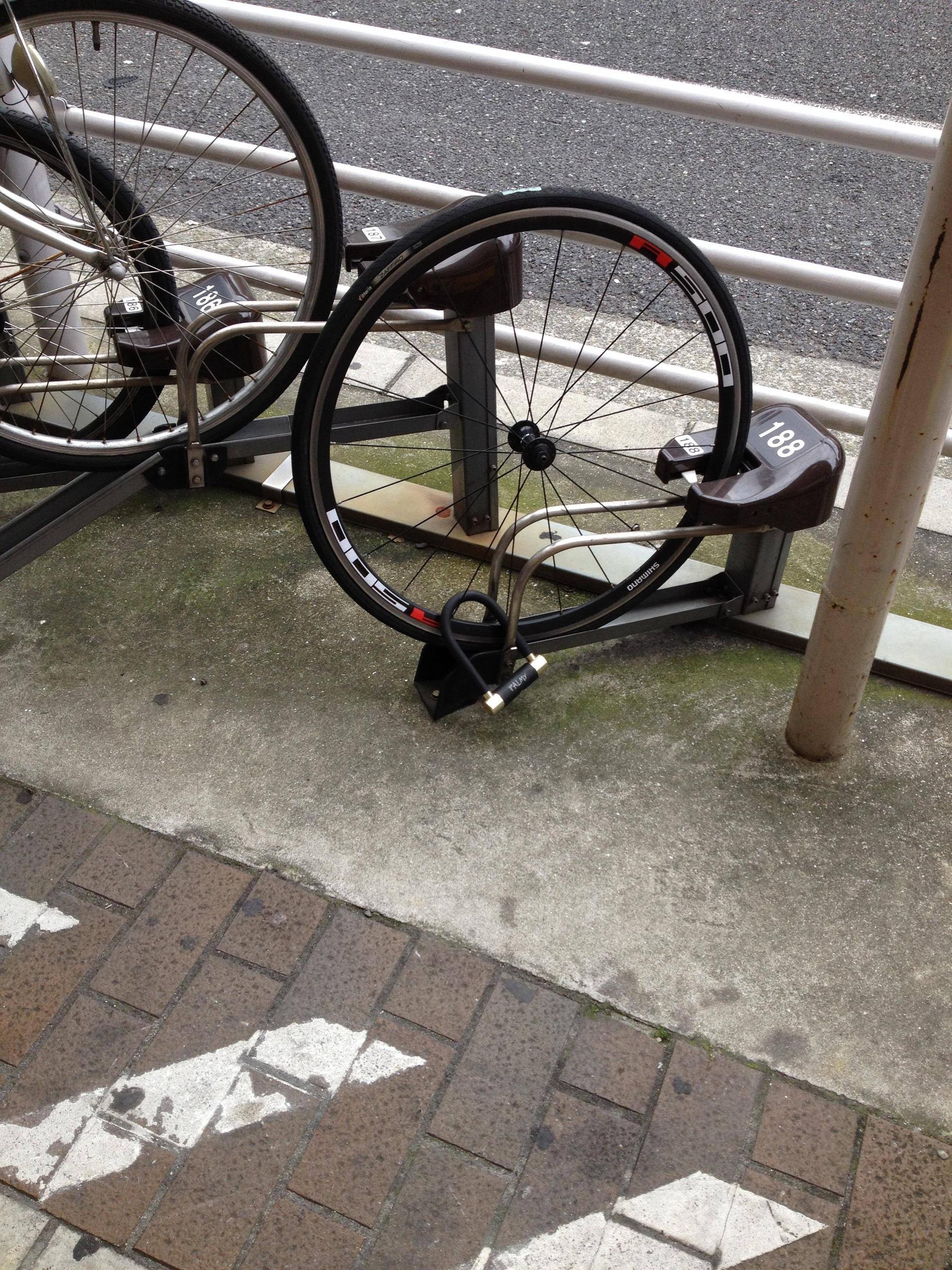 クイックリリースだと地球ロック+(前ホイール、フレーム、後ろホイール)を繋いどかないとワンタッチでもってかれるけど
