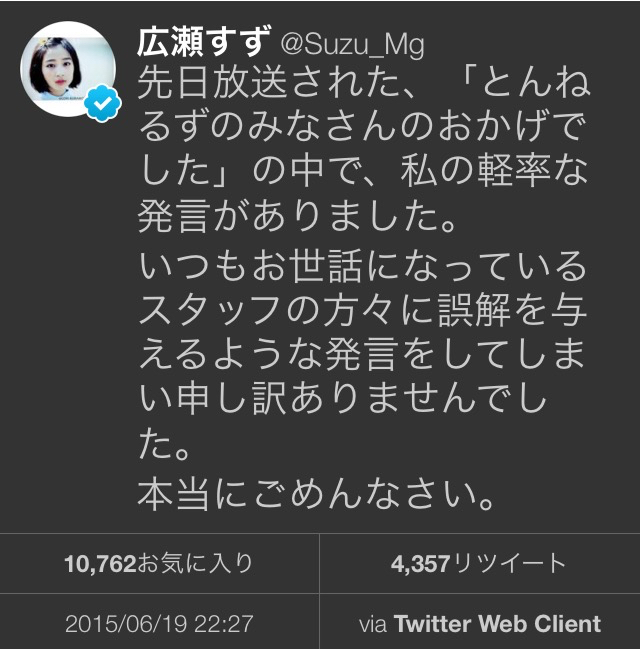 広瀬すずに丁寧な謝罪文なんか書けるわけがない
