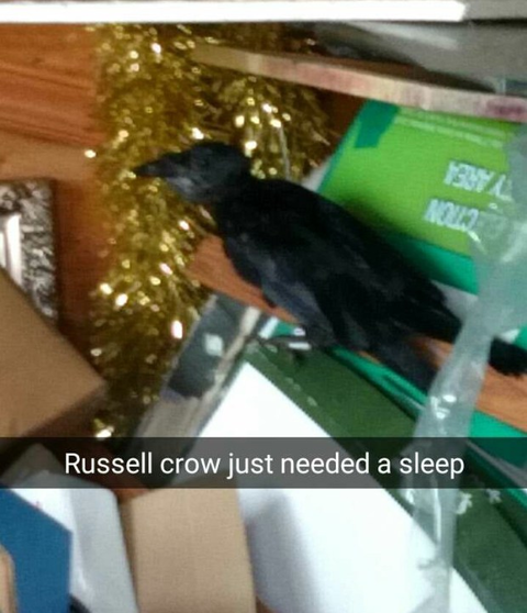 彼はそのカラスを助け、ラッセルと名づけました。