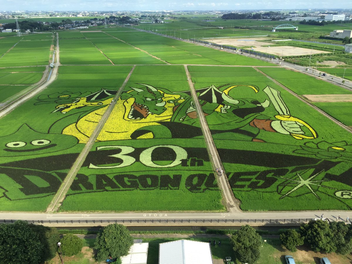 3年目の今年の作品は、夏から秋の「田んぼアート」の絵柄にもなったゲーム「ドラゴンクエスト」に登場するモンスター「スライム」(高さ2メートル、幅2・1メートル)3体と、「キングスライム」(高さ9・3メートル、幅8・8メートル)。