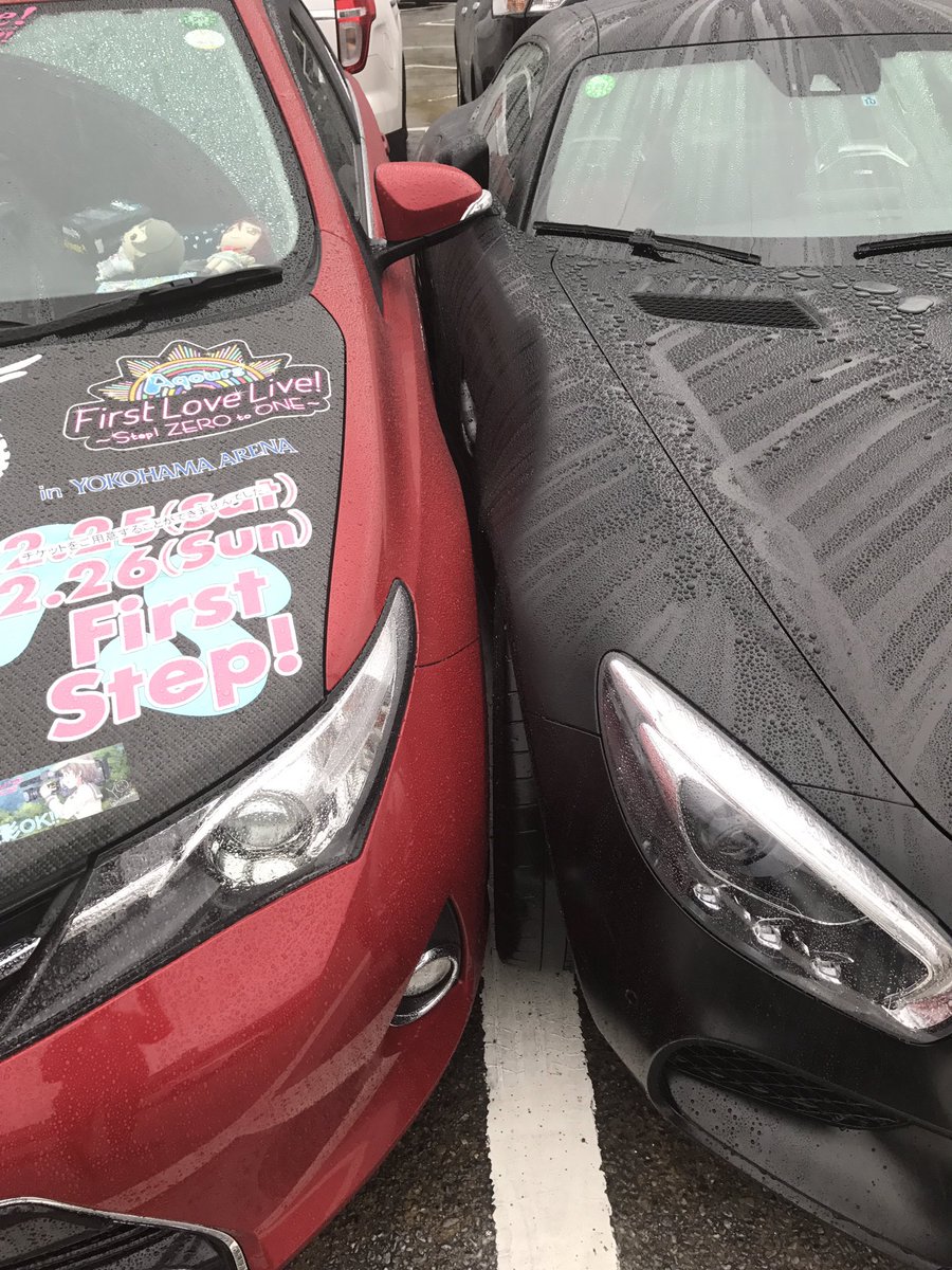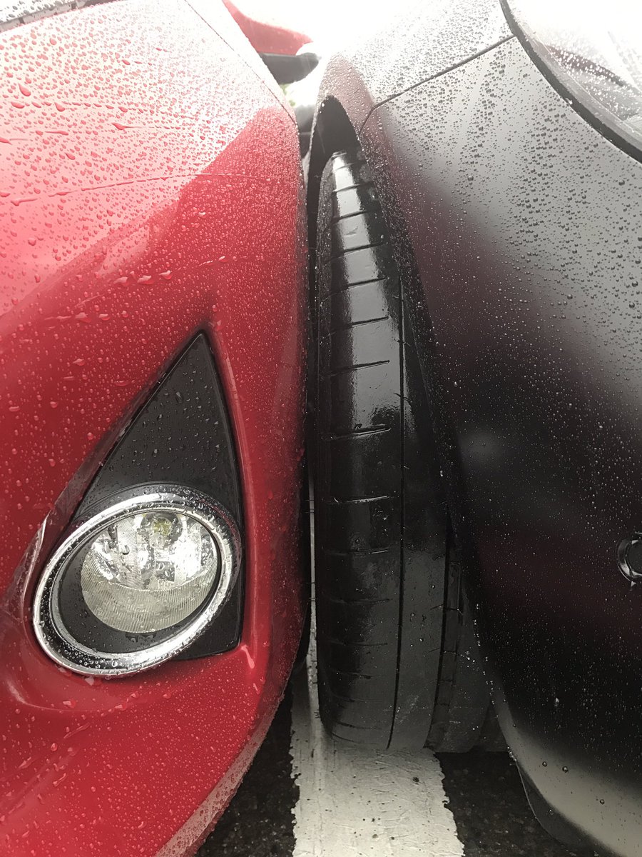 ワイパー位置からしたら左ハンドルで隣にセダンが止まってるので、クーペの大きいドアを開くには仕方ない部分もあるけど。