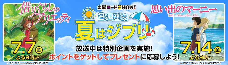 スタジオジブリの劇場版アニメ「借りぐらしのアリエッティ」など米林宏昌監督が手がけた2作品が、「金曜ロードSHOW!」(日本テレビ系)で7月7日から2週連続で放送されることが分かった。米林監督の最新作「メアリと魔女の花」が7月8日に公開されるのに合わせて、「2週連続 夏はジブリ」と題して、7月7日に「借りぐらしのアリエッティ」を、同14日に「思い出のマーニー」を午後9時から放送する。