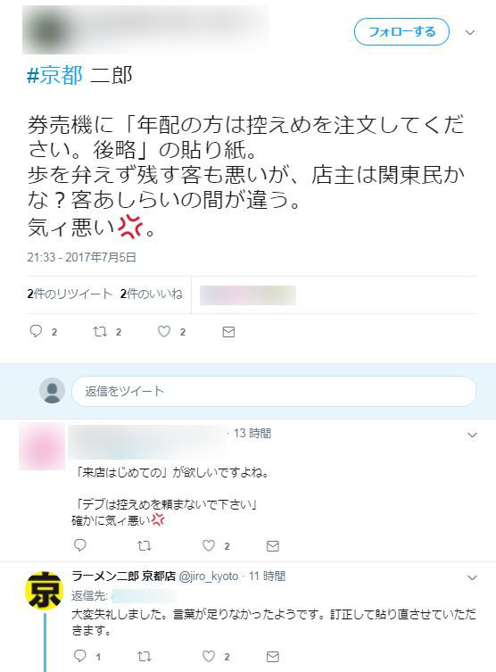 店主「配慮が足りず申し訳ありませんでした。訂正して張り直します」