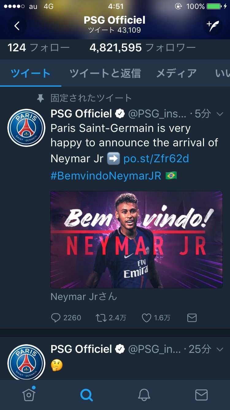 ネイマール、ついにPSG加入が公式発表!史上最高額の移籍金290億円で5年契約