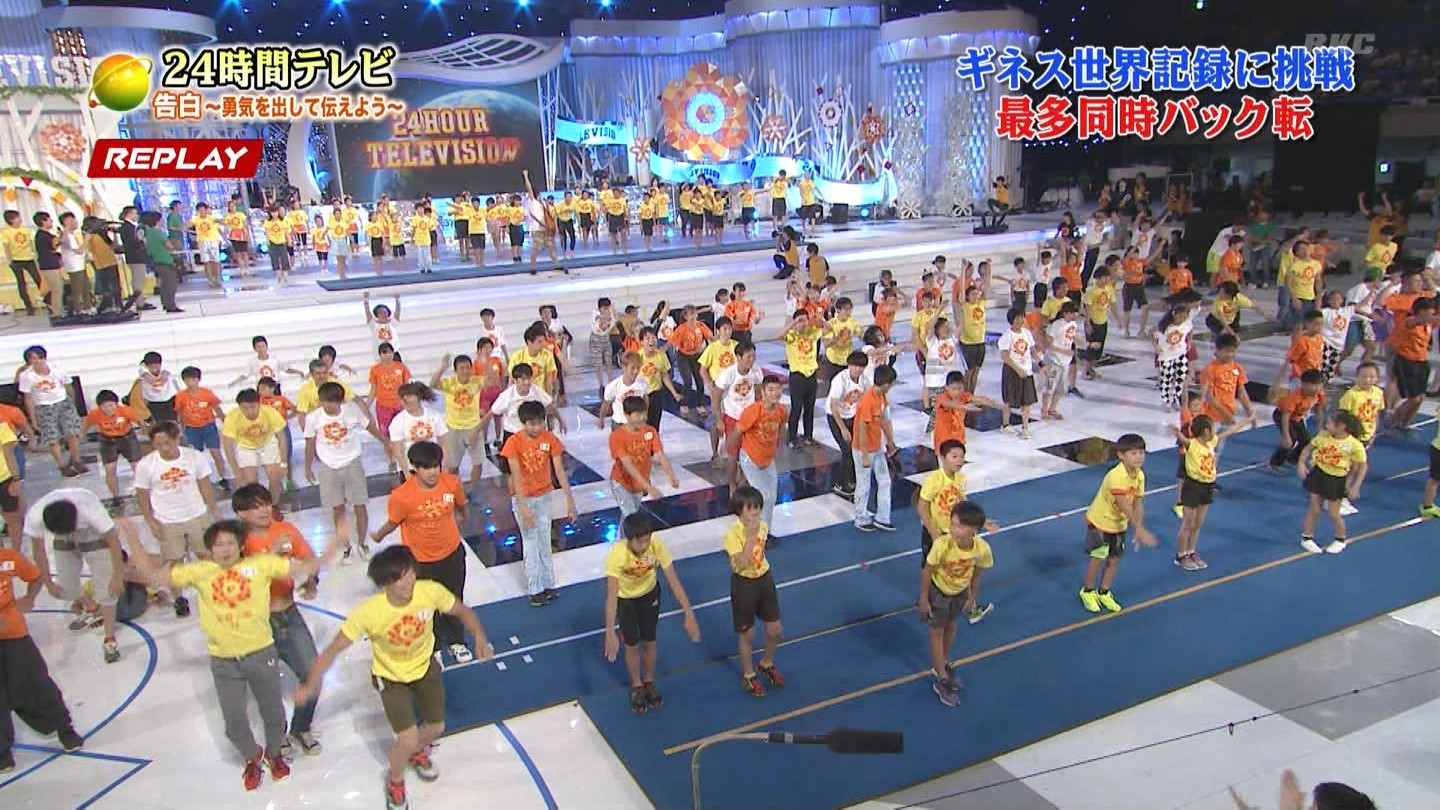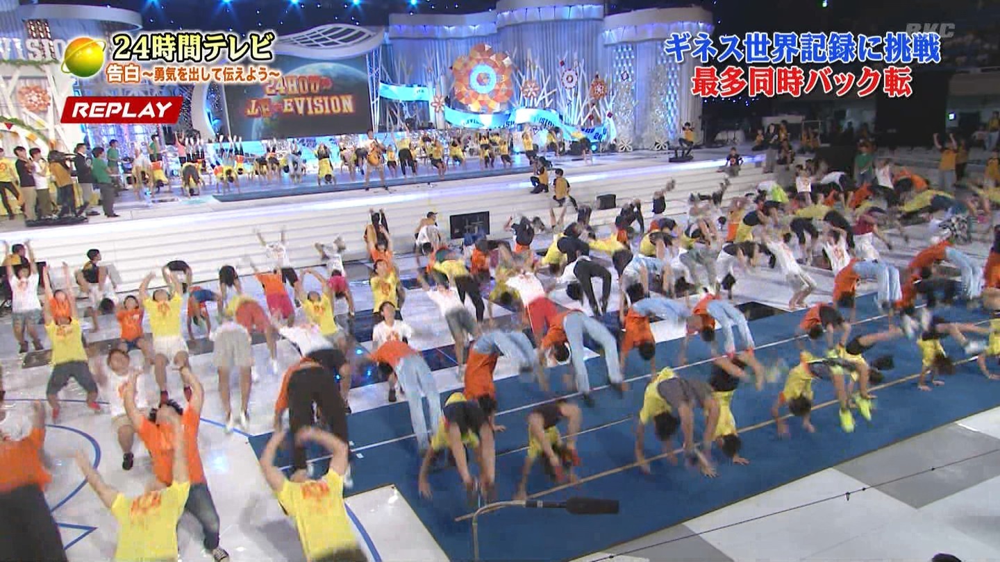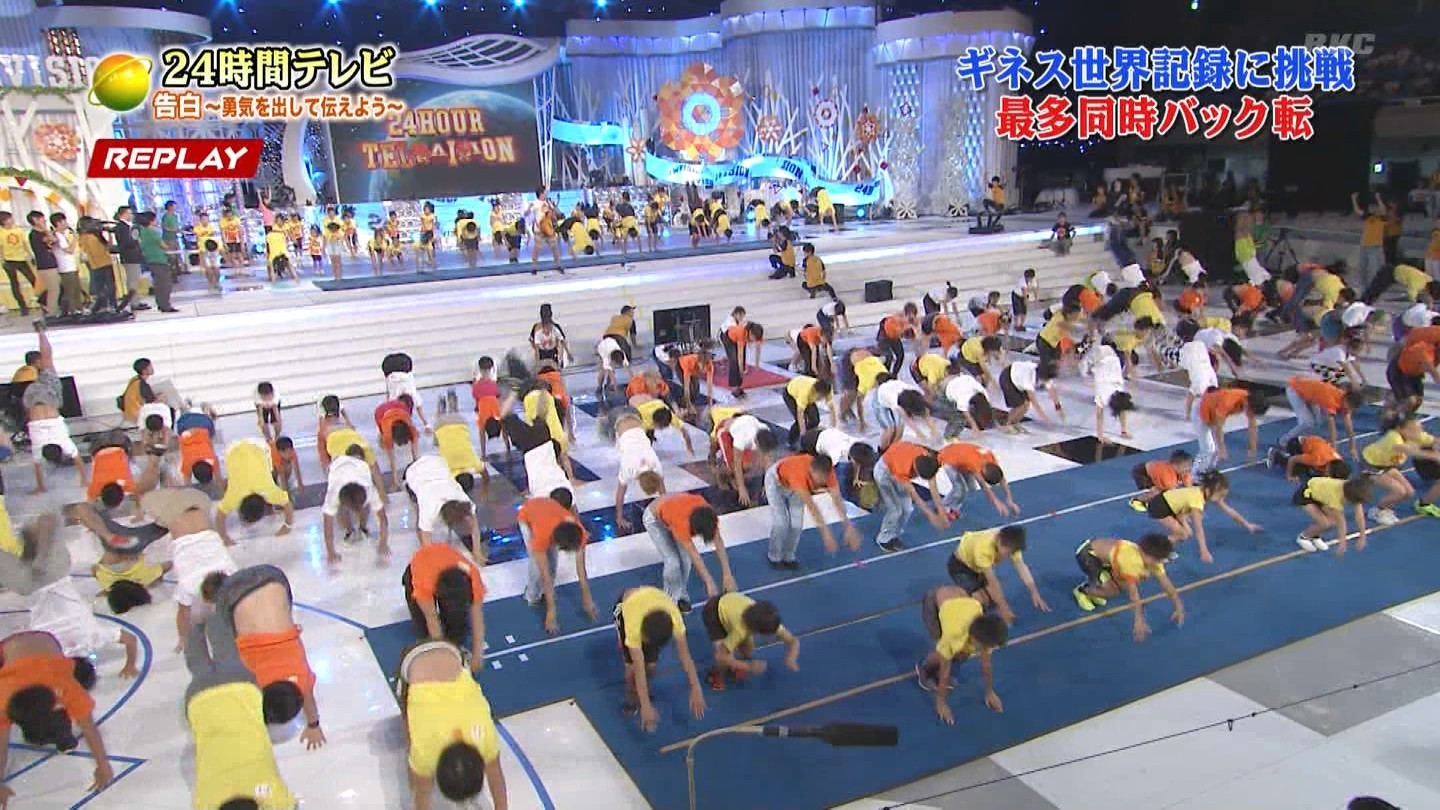 番組会場でやる必要が一体どこにあるのか。そもそも大人数でバク転したからギネスってのがネタ切れじゃねーかww