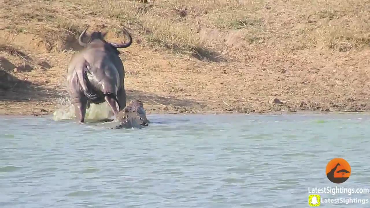 カバの突撃には適わなかったようで、ワニもヌーの足を放してしまい、無事解放された。