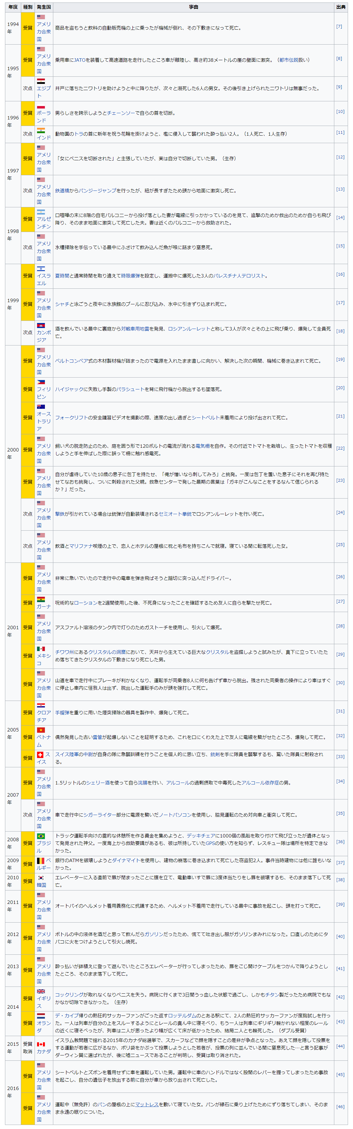 ボトルの中の液体を酒だと思って飲んだらガソリンだったため、慌てて吐き出し服がガソリンまみれになった。口直しのためにタバコに火をつけようとして引火し焼死。