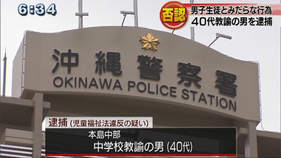 2017年5月、本島中部に住む中学校教諭の男が自身が勤める学校に通う男子生徒にみだらな行為をしたとして、逮捕されました。