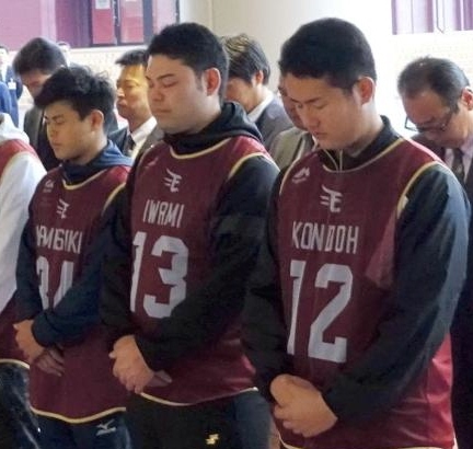 星野副会長の死を悼み、黙祷する新人選手とスカウト陣