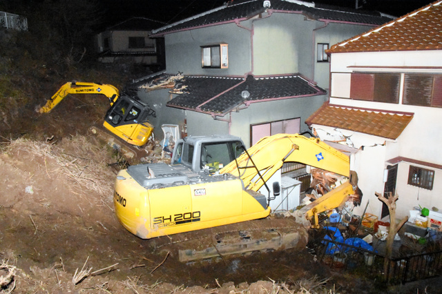 重機滑り落ち民家に衝突 起こそうとした重機も隣家壊す