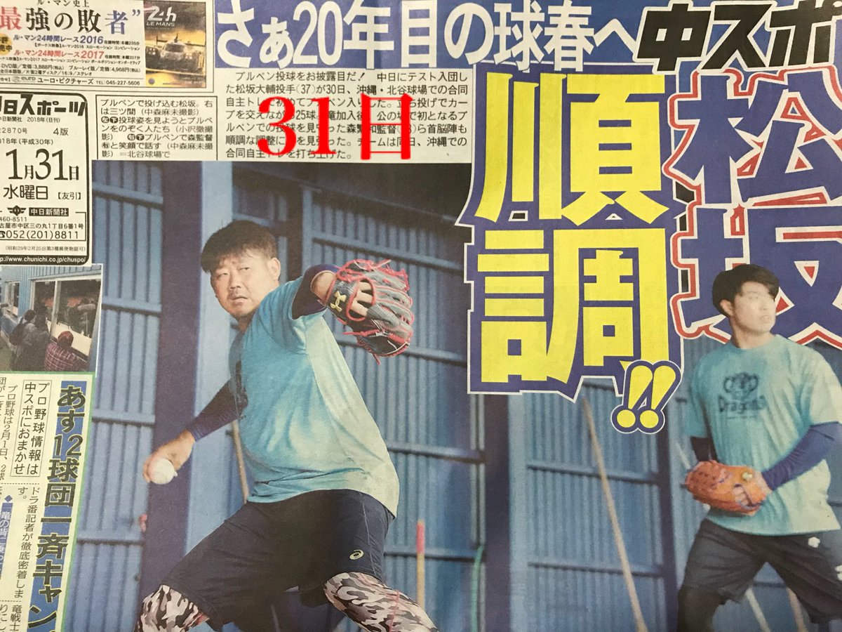 中日スポーツ1面10日連続松坂でウハウハやぞ