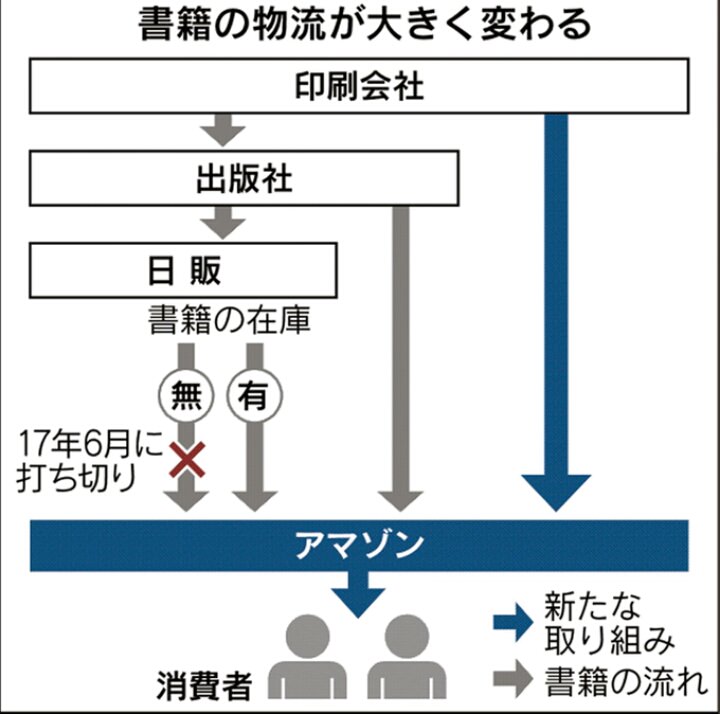 アマゾンは書籍の多くを日販から仕入れている。日販が在庫を持たない書籍の仕入れは2017年6月に打ち切り、在庫がある場合のみ取引していた。