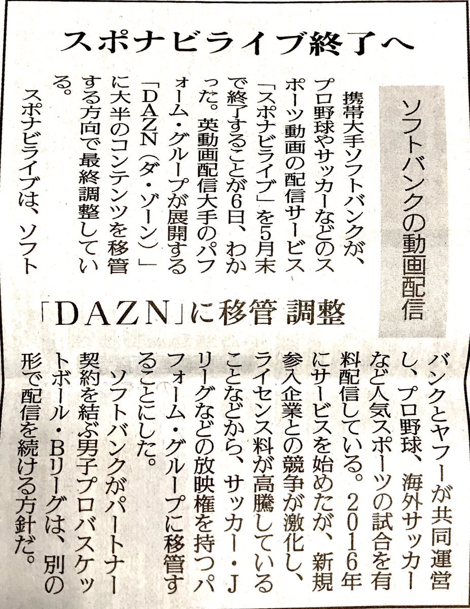 つーかこれ、事実上スポナビライブがDAZNに吸収されただけだな