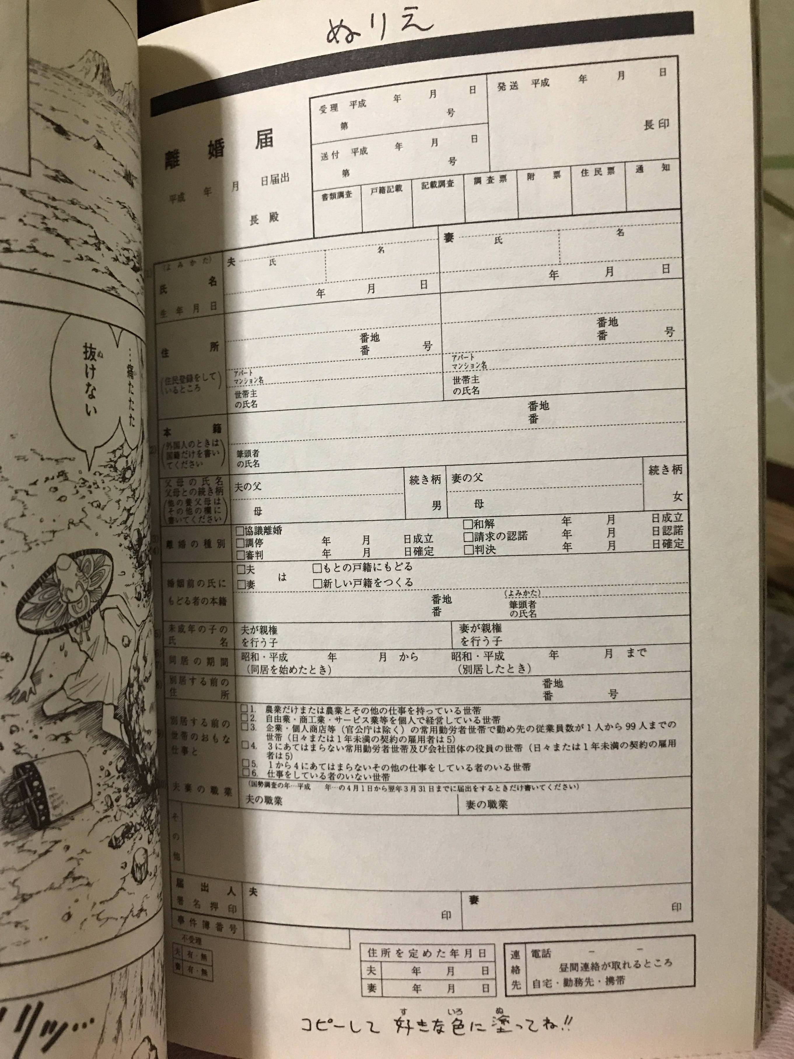 >意味も何も離婚届を塗り絵と表するって言うユーモアやろ