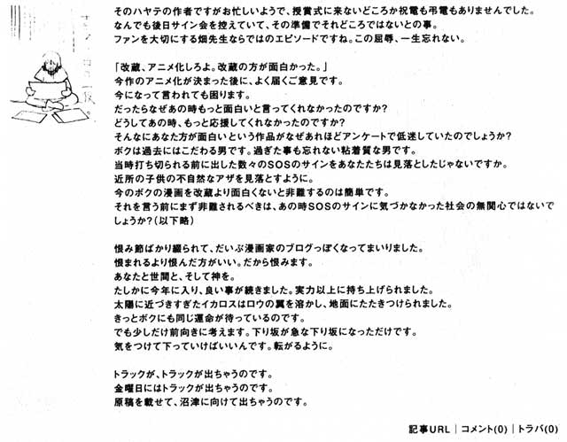 枠外の作者ツッコミとか巻末の長文日記とか。