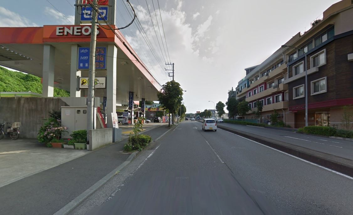 11日午前8時半ごろ、横浜市都筑区の県道で、同じ方向に進んでいたポルシェと大型バイクが接触し、ポルシェは、道路脇のガソリンスタンド手前にある、コンクリートの壁に突っ込んだ。