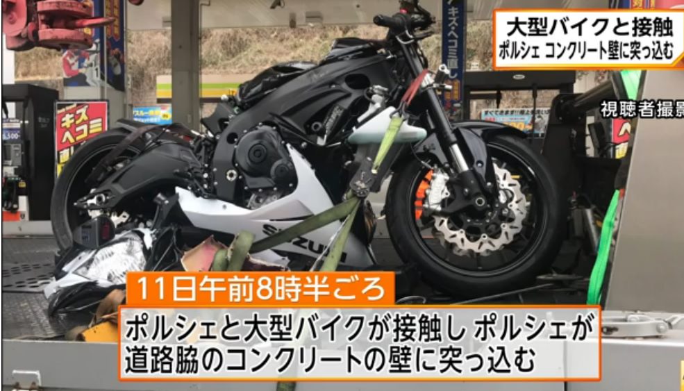 また、バイクも横転して、運転していた男性(40)が足を打撲するなど軽傷で、ポルシェを運転していた男性にけがはなかった。