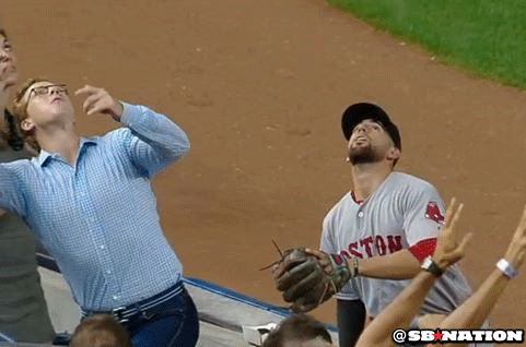野手が捕れない位置じゃないけど客が邪魔で諦めているな