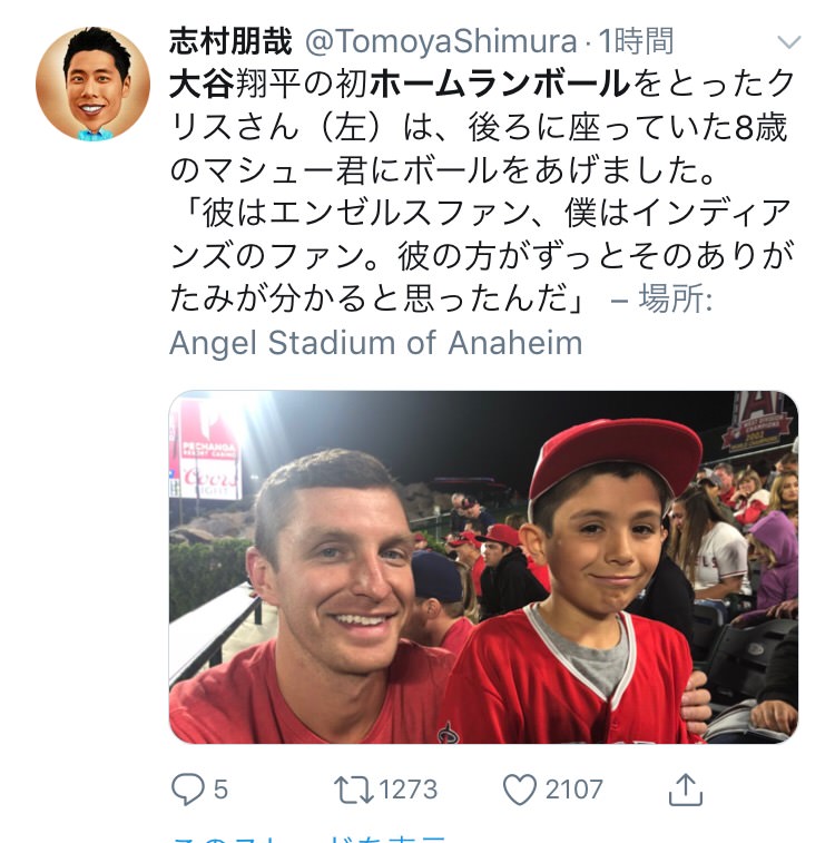 草Tの人がボールキャッチして後ろに座ってたエンゼルスファンの子供にあげたらしい