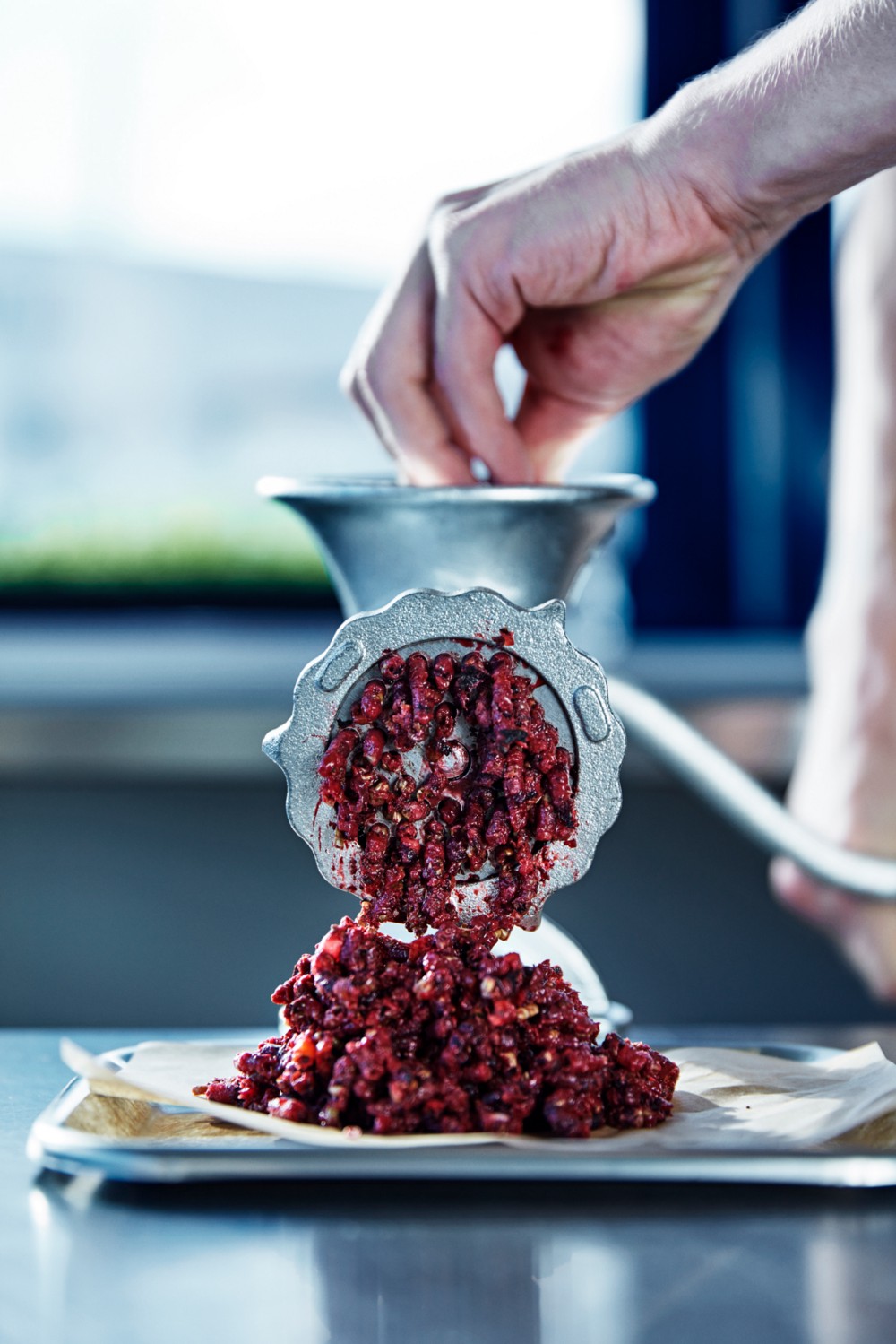 続いてバグ(昆虫)バーガー。こちらはビートの根と根菜の一種であるパースニップ、芋そしてゴミムシダマシ科の甲虫の幼虫によって作られる。