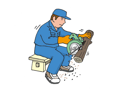 伐採に丸ノコ使うとか怖すぎ。