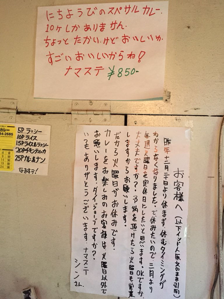 チラシに「インドカレーやですナンはないよ」と書いてあった