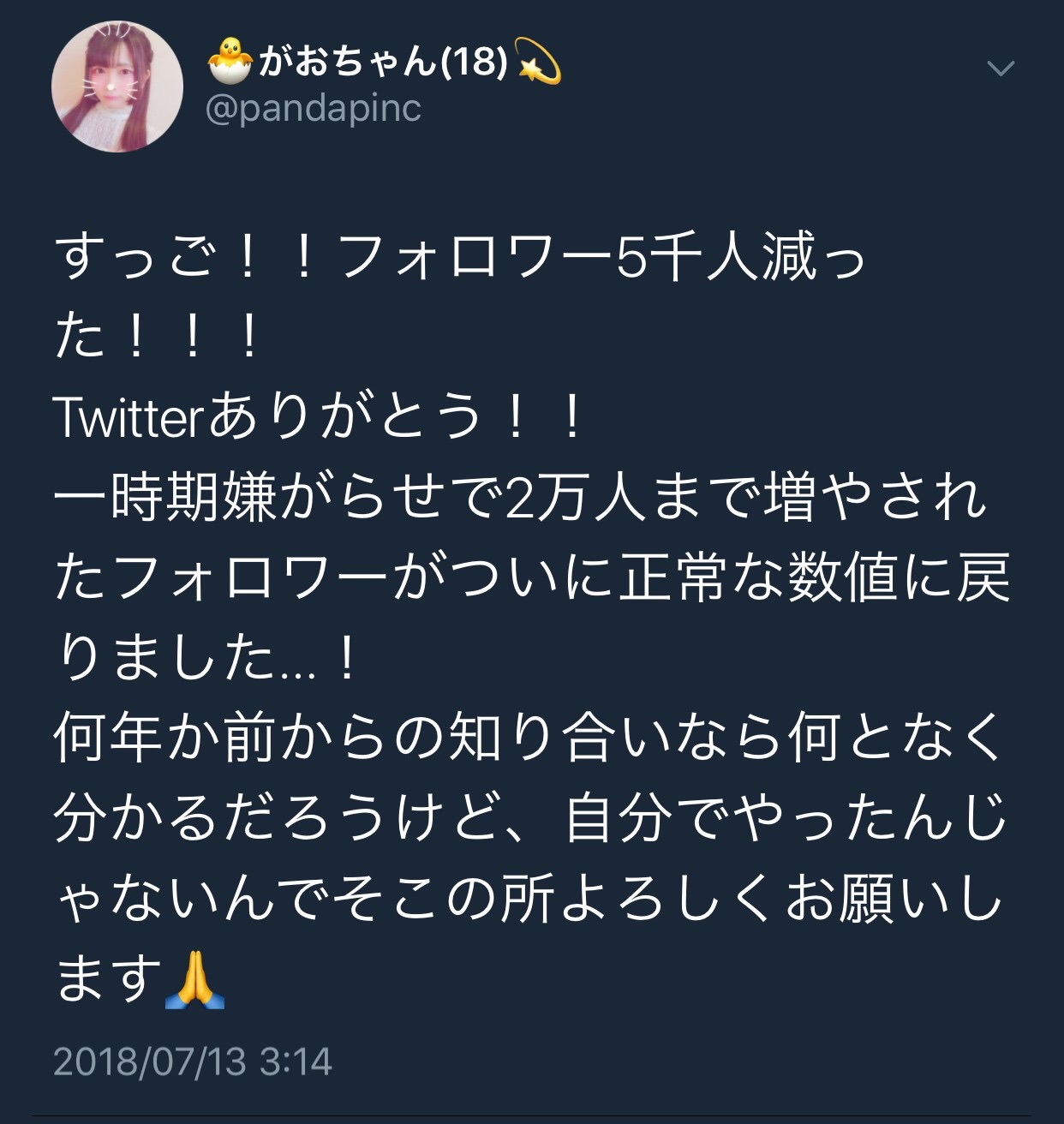 こんなんより半分以上フォロワー減ったやつ晒せ