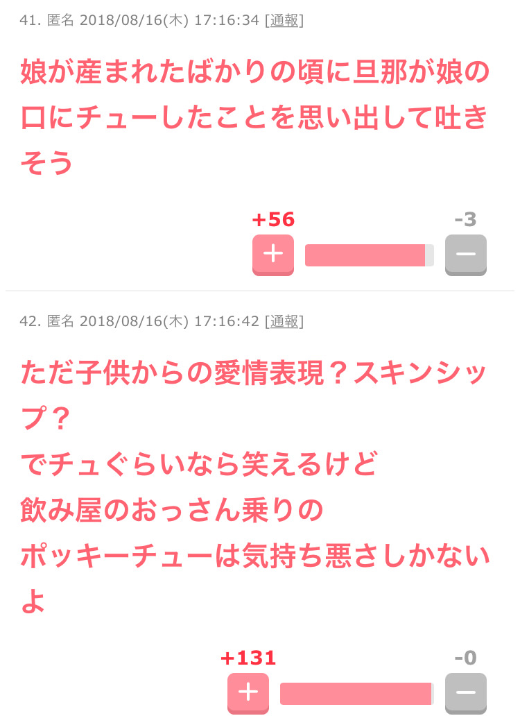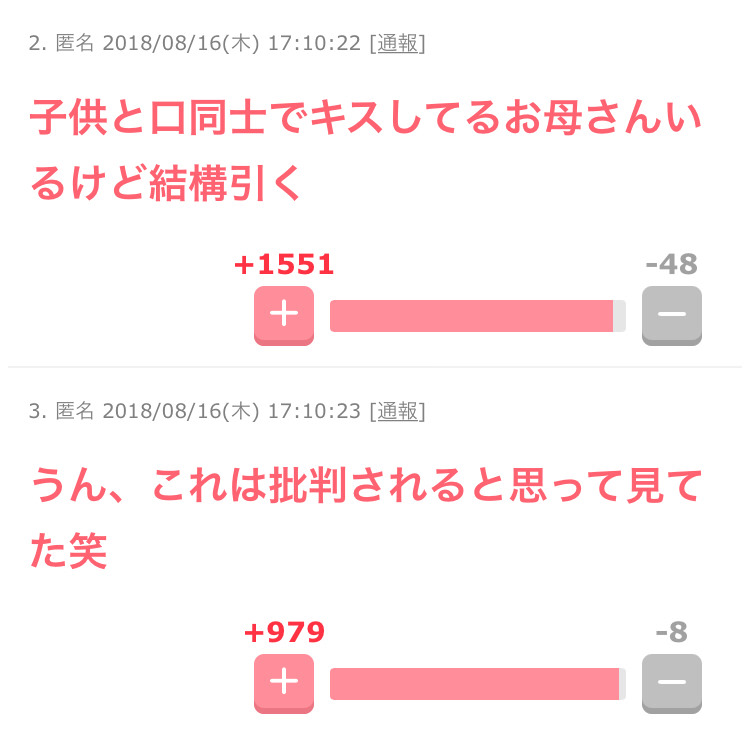 ・口ちゅーも問題なんだろうけど、1番の問題は写真をネットにアップする行為じゃない? 子供が思春期になったときかわいそう……