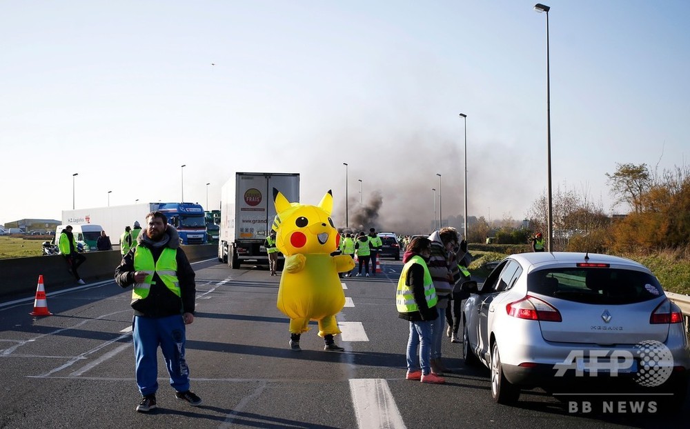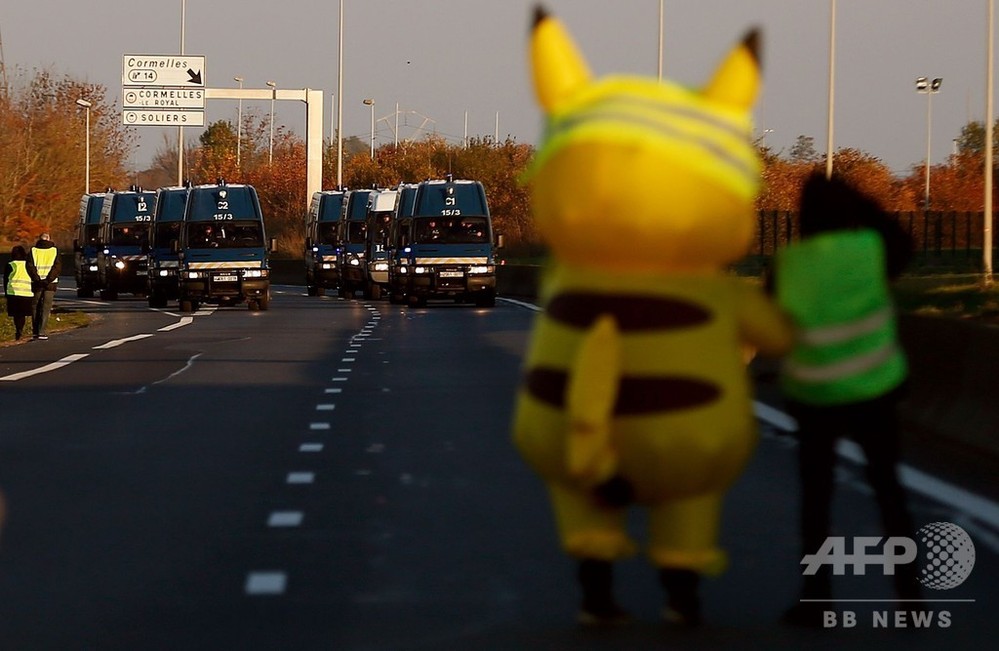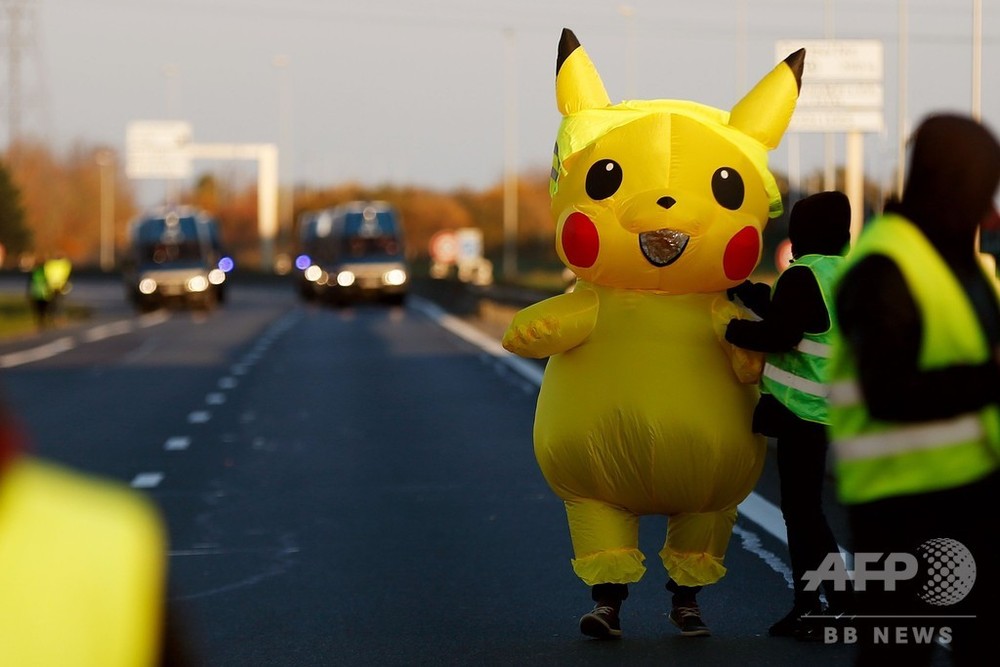 デモ参加者はその服装から「黄色いベスト」と呼ばれており、同じ色だからか、北西部カーンでは人気キャラクター「ピカチュウ(Pikachu)」の着ぐるみが登場。警察隊と対峙(たいじ)する一幕もあった。