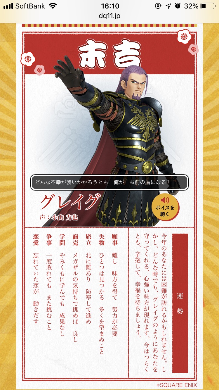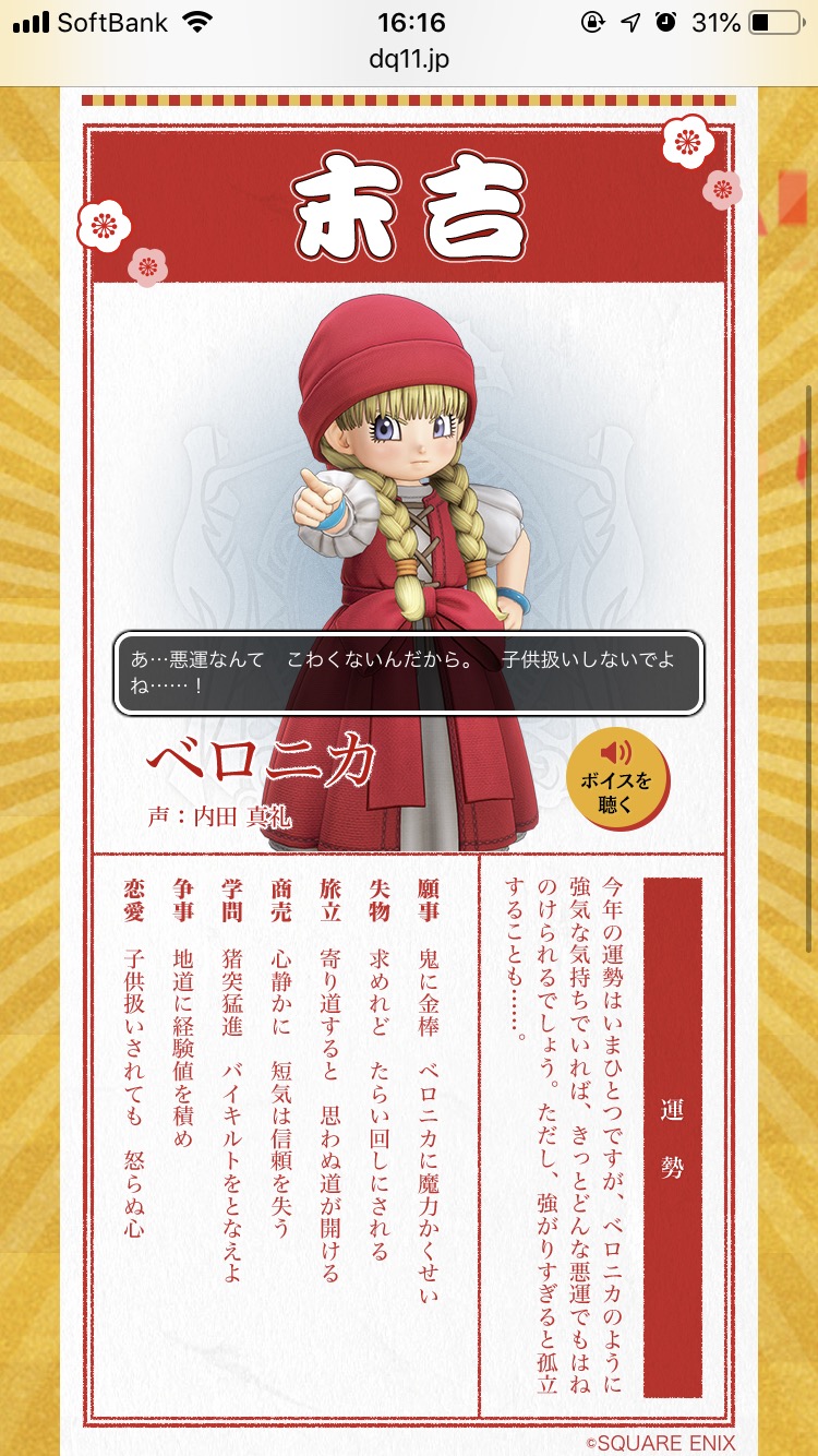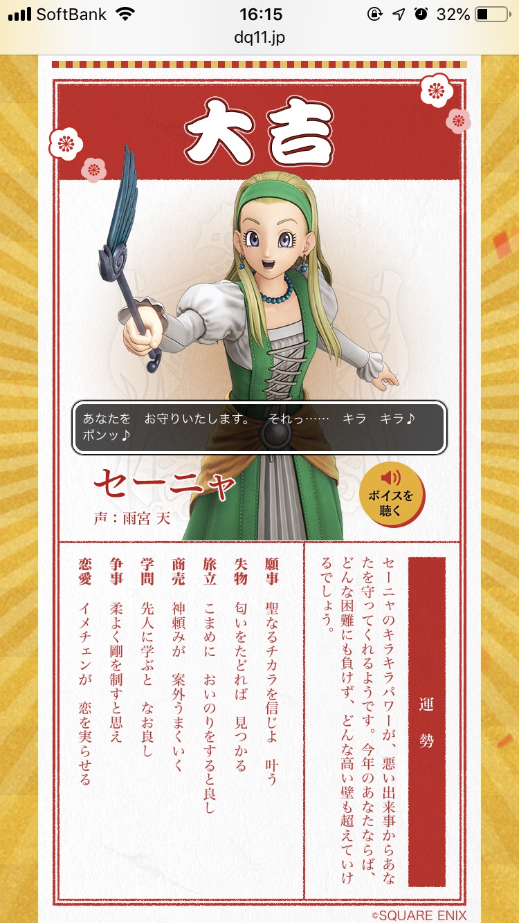 ドラクエ11のHPにあるおみくじで見れるで