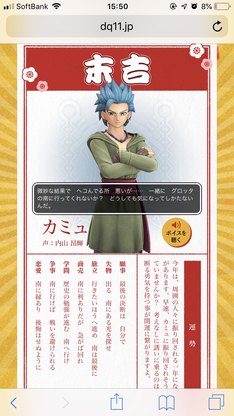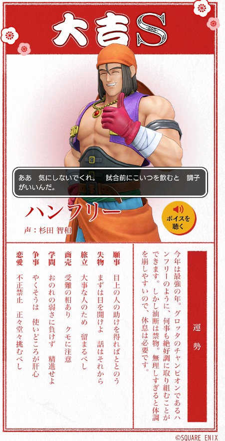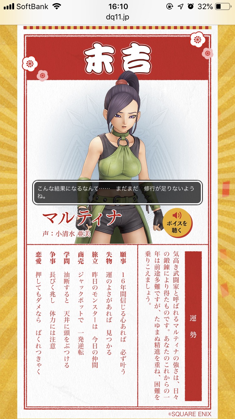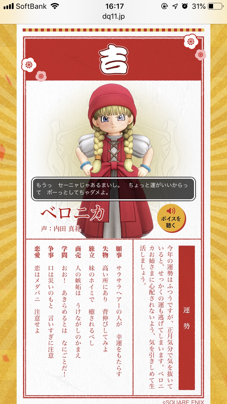 ドラクエ11のHPにあるおみくじで見れるで
