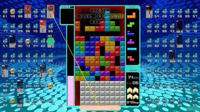 画面にはリアルタイムに対戦相手の98人のプレーヤーのプレイ画像が映し出され、テトリミノを消すことで他の対戦プレーヤーに攻撃を仕掛けることも可能。熱い対戦仕様となっているようだ。