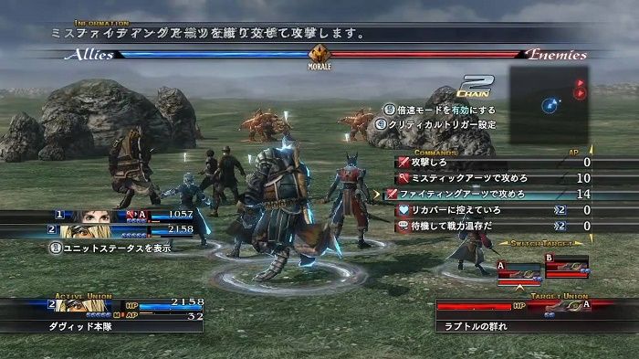 最大9人が同時に戦闘に参加するけどコマンド選べるのが3人まで