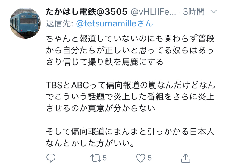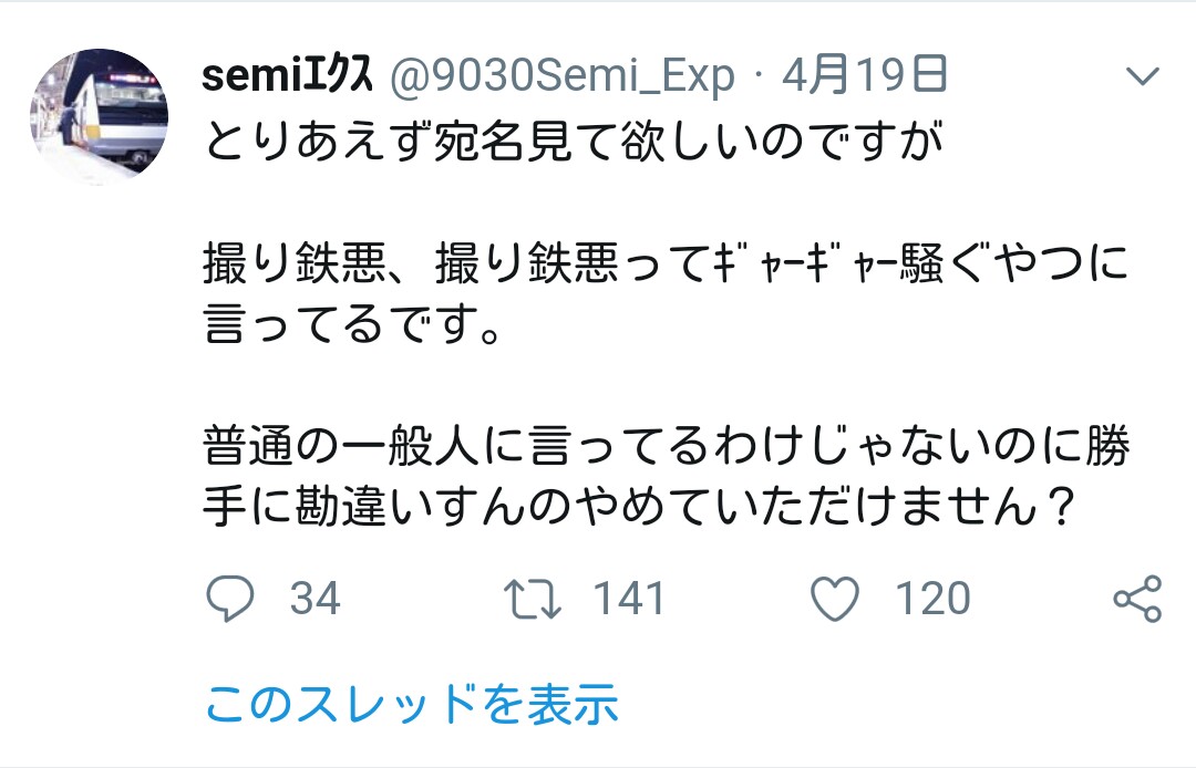 普通の一般人が撮り鉄は〜って言うとんのわからんのかな