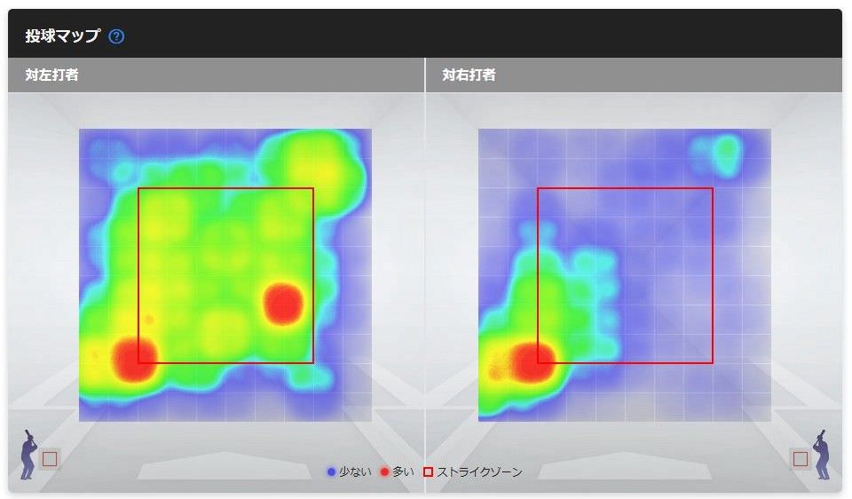 プロのピッチャーってほとんどがこういうヒートマップになるんじゃないのか?