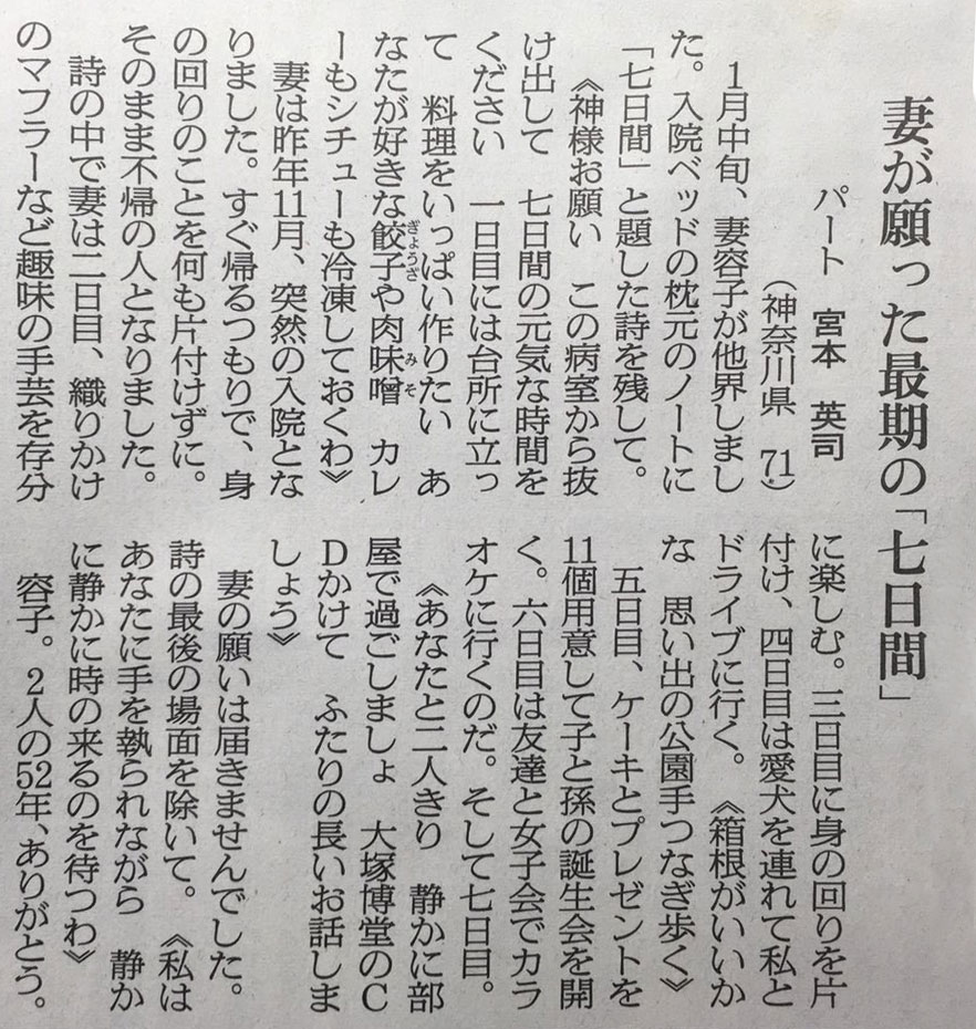 長年連れ添った妻に、病床で要らないもの宣言されるとか、あまりに可哀そうすぎる